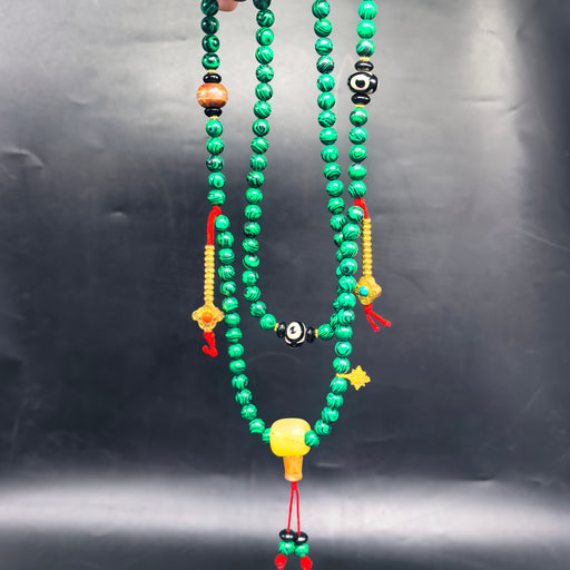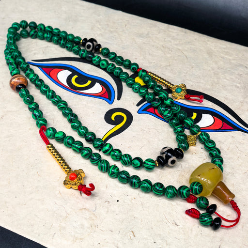 Mala Tibetana 108 Grani – Malachite, Agata & Dzi Tre Occhi Una mala di rara bellezza e potenza spirituale, che unisce tre elementi sacri della ...