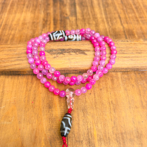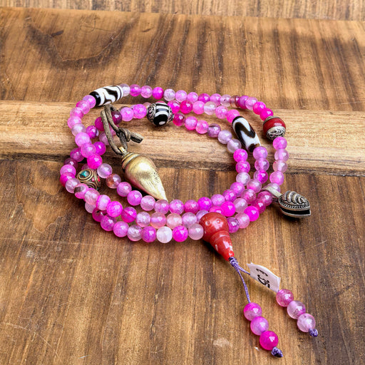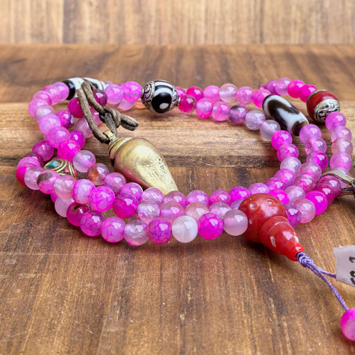 Mala in Agata Tinta, Dzi Tibetana e Conchiglia – Energia protettiva, tradizione e connessione spirituale La Mala in Agata Tinta con perle Dzi tibet...