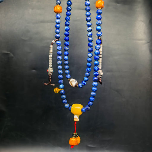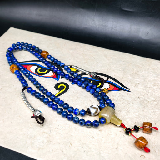 Questa mala tibetana è composta da 108 grani di lapislazzuli, la pietra sacra per eccellenza nella tradizione buddhista tibetana, da sempre associa...