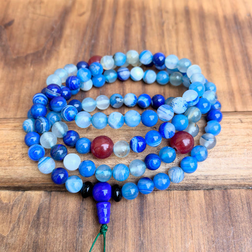 Mala in Agata Blu – 108 grani Scopri la Mala in Agata Blu, composta da 108 grani e realizzata secondo la tradizione tibetana. L’agata blu è una pie...