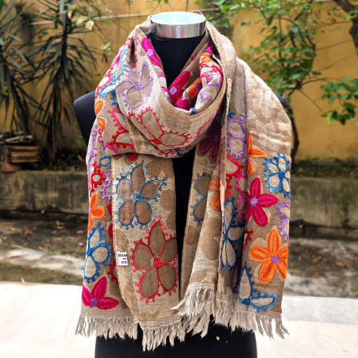 Dimenzione : 185x75 cm Sciarpa 100% Lana ricamato Esplora la nostra esclusiva collezione di sciarpe di lana dal Nepal, arricchite da dettagli ri...