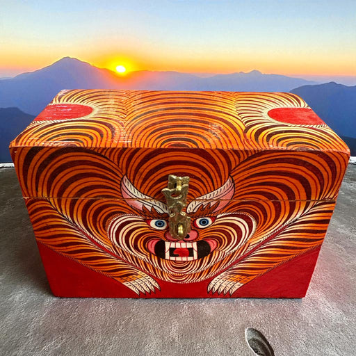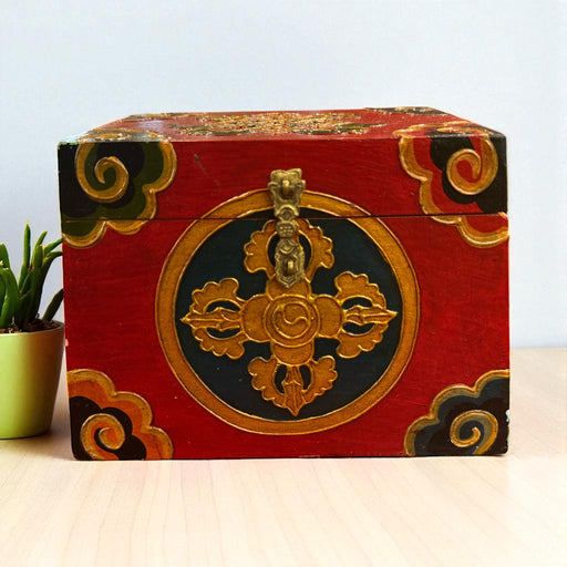 Misura : LxBxH (larghezza 18cm ,profondità 10cm, altezza 12cm) colour: rosso e giallo/bianco Questa bellissima scatola di legno è realizzata in Nep...