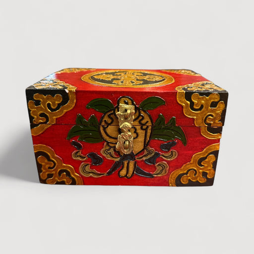 Misura : LxBxh (larghezza 15cm ,profondità 11cm, altezza8cm) colour: rosso e oro/verde Questa bellissima scatola di legno è realizzata in Nepal...