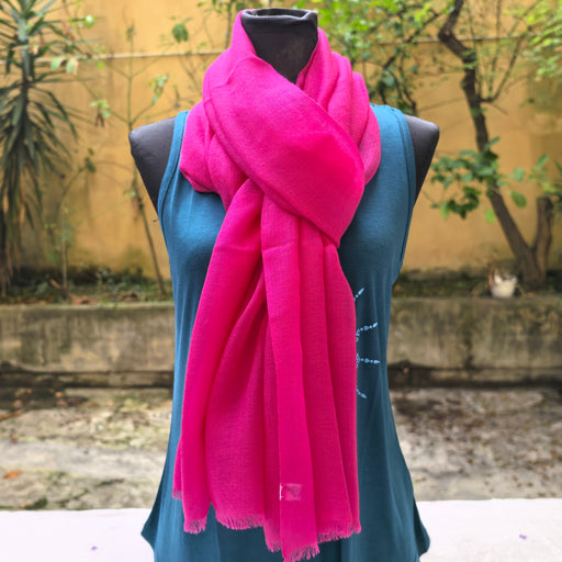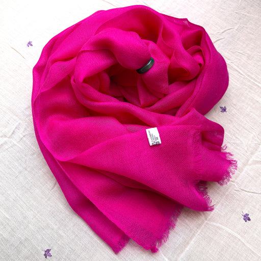 Morbidissimo scialle ad anello in cashmere colore fucsia . Tessuto in cashmere pregiato estremamente leggero, con trama a saia e rifinito con una c...