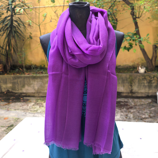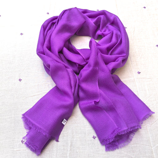 Morbidissimo scialle ad anello in cashmere colore viola . Tessuto in cashmere pregiato estremamente leggero, con trama a saia e rifinito con una co...