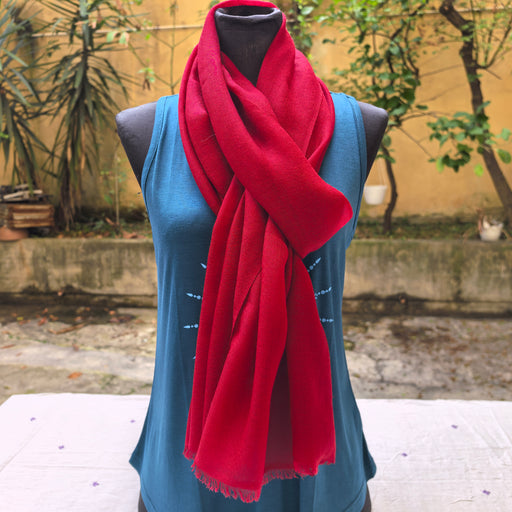 Morbidissimo scialle ad anello in cashmere colore rosso . Tessuto in cashmere pregiato estremamente leggero, con trama a saia e rifinito con una co...