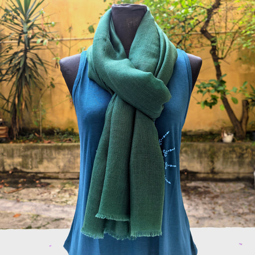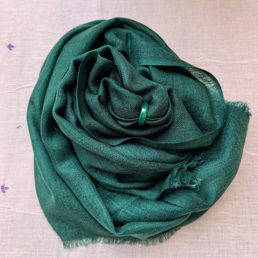 Morbidissimo scialle ad anello in cashmere colore verde. Tessuto in cashmere pregiato estremamente leggero, con trama a saia e rifinito con una cor...