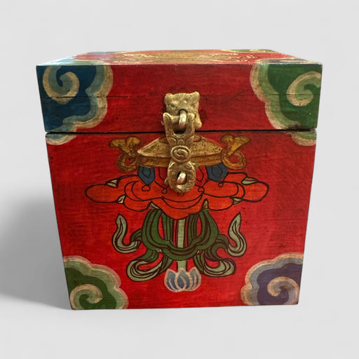 Misura : LxBxh (larghezza 13cm ,profondità 10cm, altezza13cm) colour: rosso e verde/ blu Questa bellissima scatola di legno è realizzata in Nepa...