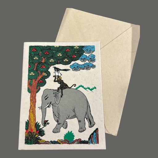 Dimenzione: 16x12 cm Beautifully coloured and decorated greetings card, made from Lokta paper. Lokta paper making is a traditional practice from th...