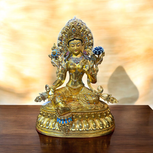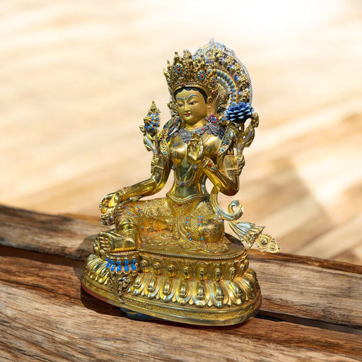 Statua Tara Verde dorata in bronzo – Divinità Buddhista della Compassione, Protezione e Liberazione 10cm La statua di Tara Verde, dorata in bronzo ...