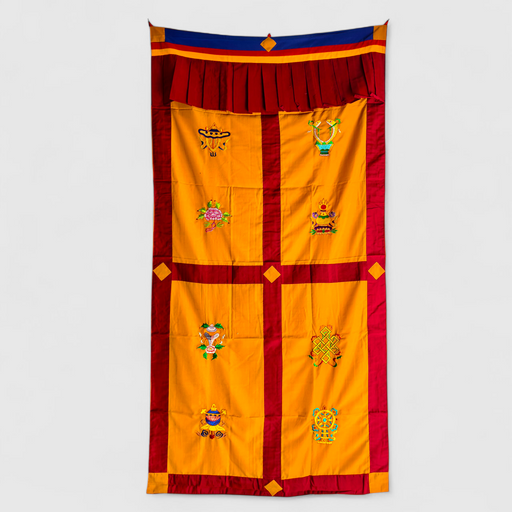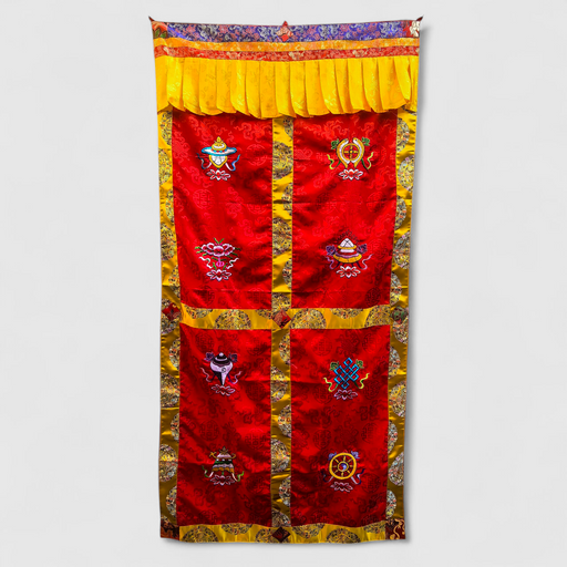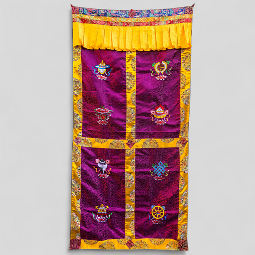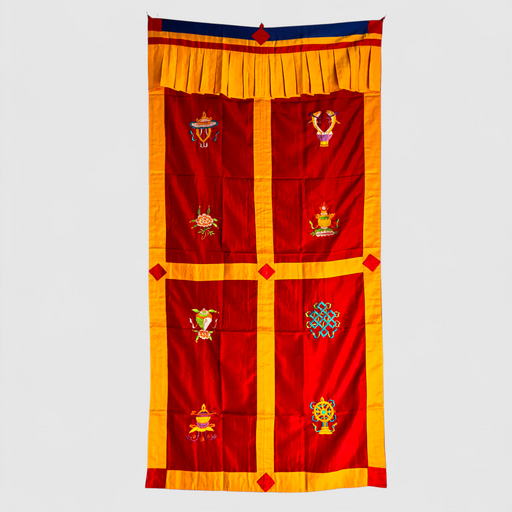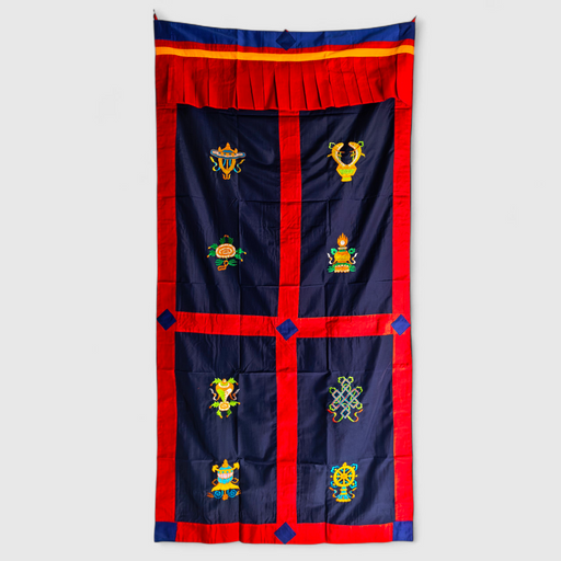 Tenta di Porta ricamata, otto simboli di Buon Auspicio e aggiungi un tocco spirituale al tuo spazio con le tradizionali tende tibetane, caratterizz...