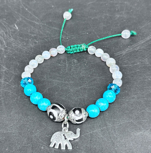Misura: regolabile Questa bracciale è fatto da noi con pietra di luna 6mm e turchese 8mm. Poi piccolo ciondolo di elephant di acciaio. La pietra ...