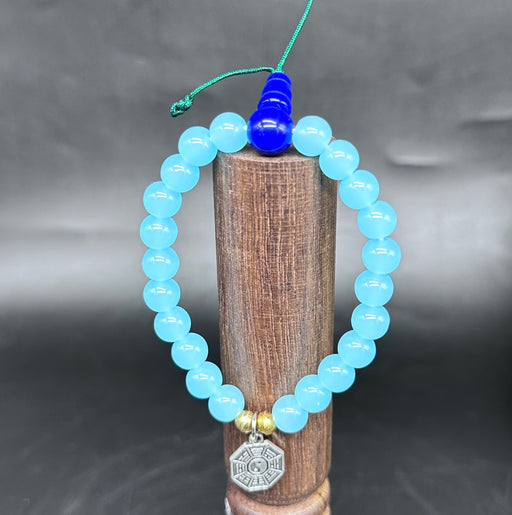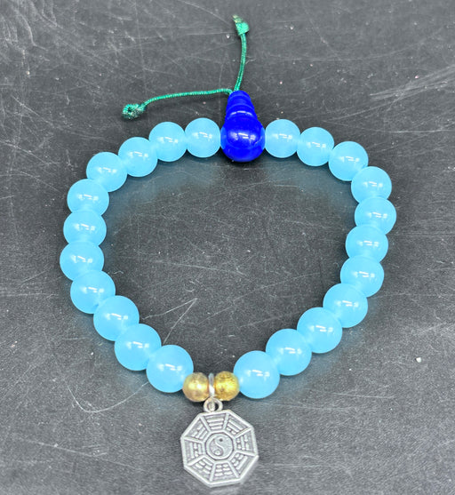 Bracciale con calcedonio 8mm blu E fatto a noi con una piccola ciondolo di yinyang. Bracciale elastico da 8 mm calcedonio blu pietre semi preziose,...