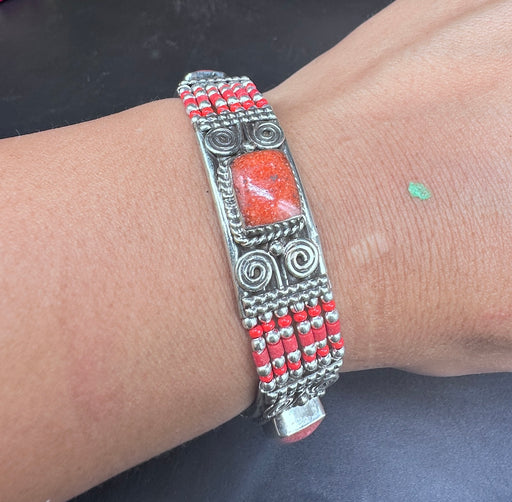 Taglia regulabile Braccialetto Argento con corallo . Fascia tipo snake. Fatto mano in Nepal
