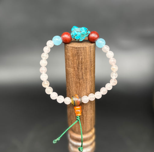 Misura: diametro 7cm / standard Questa bracciale è fatto da noi con quarzo rosa 6mm e turchese a centro. Il significato del quarzo rosa è profonda...