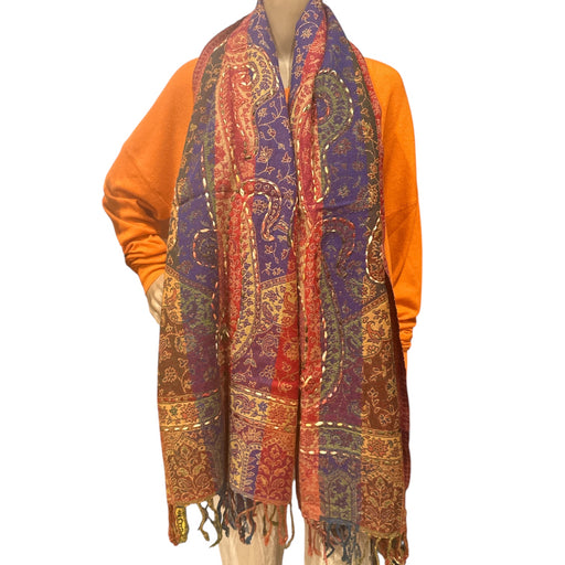 Misure: 180 cm x 70 cm. Sciarpa di lana ricamata handmade – Eleganza e tradizione dell'artigianato indiano Dimensioni: 180 cm x 70 cm – Copri spall...