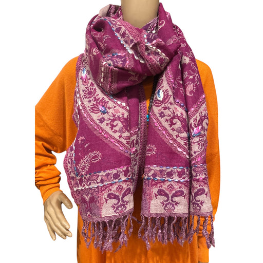 Misure: 180 cm x 70 cm. Sciarpa di lana ricamata – Eleganza e tradizione dell'artigianato nepalese. Una sciarpa in pura lana, completamente ricama...