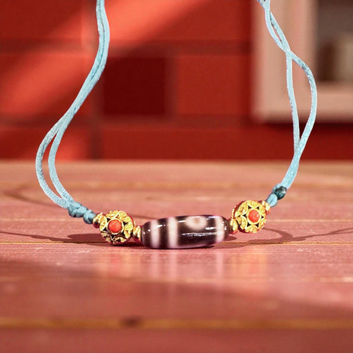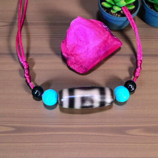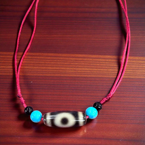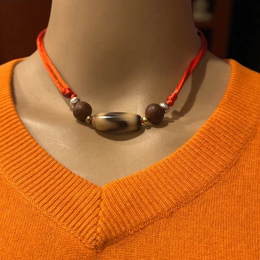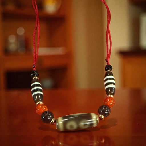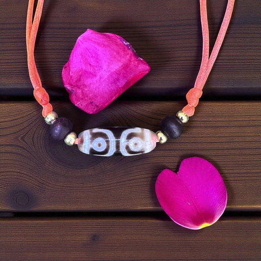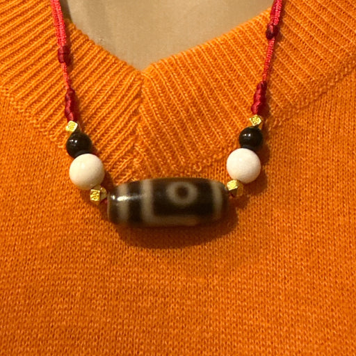 Collana Dzi tibetano 3 occhi con pietra OniceQuesta collana unisce la potenza mistica del Dzi tibetano a 3 occhi con la protezione dell’onice e l’e...