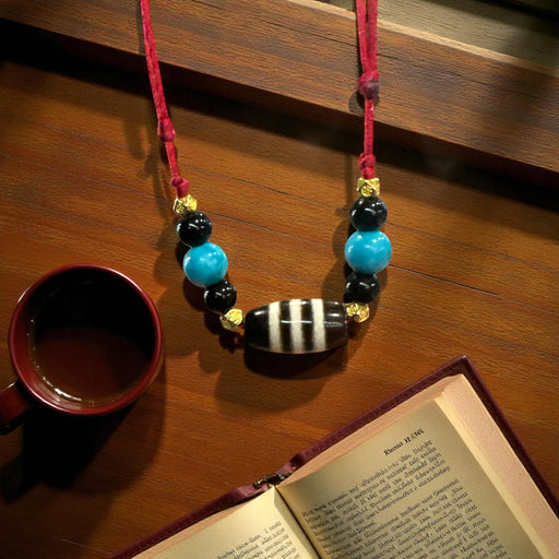 Dzi tibetano Cielo e Terra con Turchese e Tormalina Nera – Collana energetica di protezione e armonia Questa preziosa collana tibetana unisce il Dz...