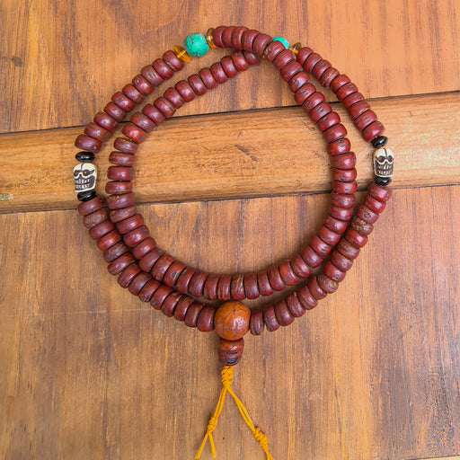 Mala Tibetano Teschio in Osso di Yak – 108 grani speciali Vivi la spiritualità tibetana con la Mala Teschio in Osso di Yak, un rosario buddhista co...