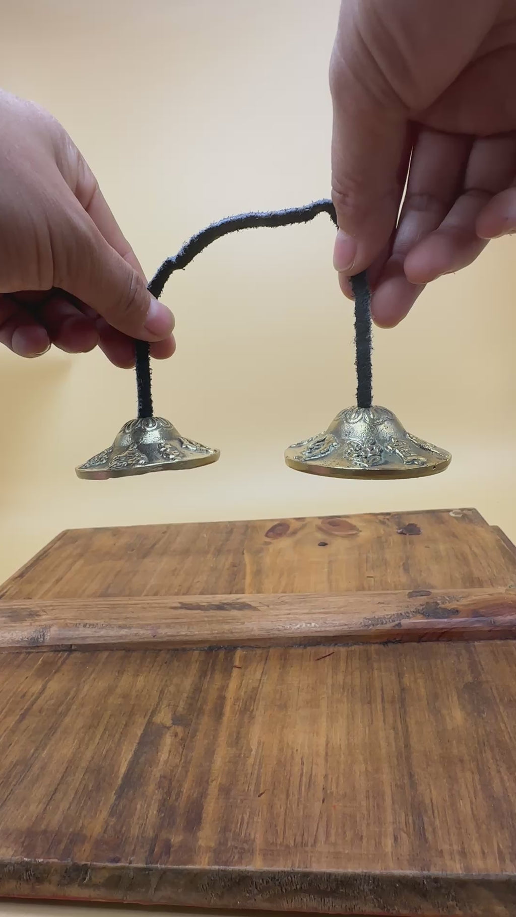Cimbali tibetani dal diametro di 6 cm, realizzati a mano in Nepal con una tradizionale lega di 7 metalli. Ogni pezzo è adornato con simboli di dragone, che richiamano protezione ed energia positiva nella cultura tibetana. Lo stile artigianale garantisce un suono pieno, chiaro e armonioso, perfetto sia per la meditazione che per le pratiche musicali spirituali.