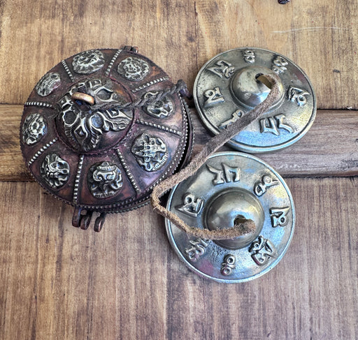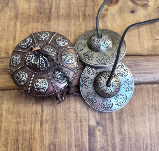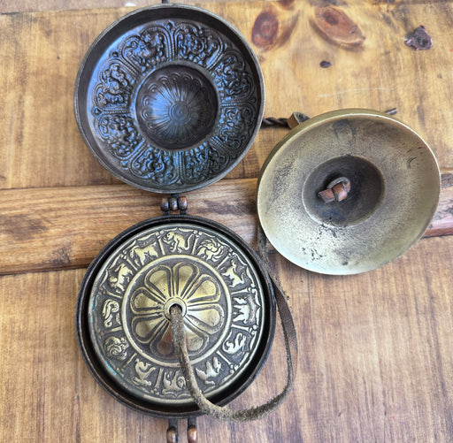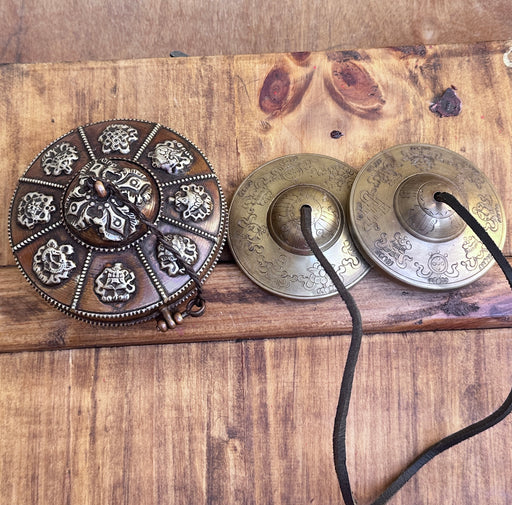 Original price €145,00 - Original price €145,00Original price€145,00€145,00 - €145,00Current price €145,00Cimbali Tibetani con Simboli Astrologia e Custodio a Rame con 8 Simboli di Buona Auspico