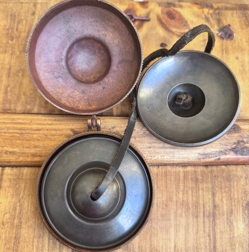Cimbali antiche tibetane realizzate con 7 metalli, complete di un Custodio interamente in rame .Il Custodio misura 11 cm di diametro, mentre ogni c...