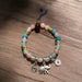 Si tratta di un braccialetto elastico con perline multi-pietra color pastello, ciondoli a forma di elefante e moneta cinese color argento.