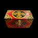 Questa bellissima scatola di legno è realizzata in Nepal con il tradizionale design dei simboli buddisti tibetani. È speciale perché è disegnata a mano su legno dell'Himalaya, che è molto leggero e resistente. È anche possibile utilizzarla come portagioie per oggetti personali. Un'altra cosa che possiamo fare è usarla come decorazione per la nostra casa e anche per i nostri uffici, poiché è un'arte tradizionale dell'artigianato tibetano.